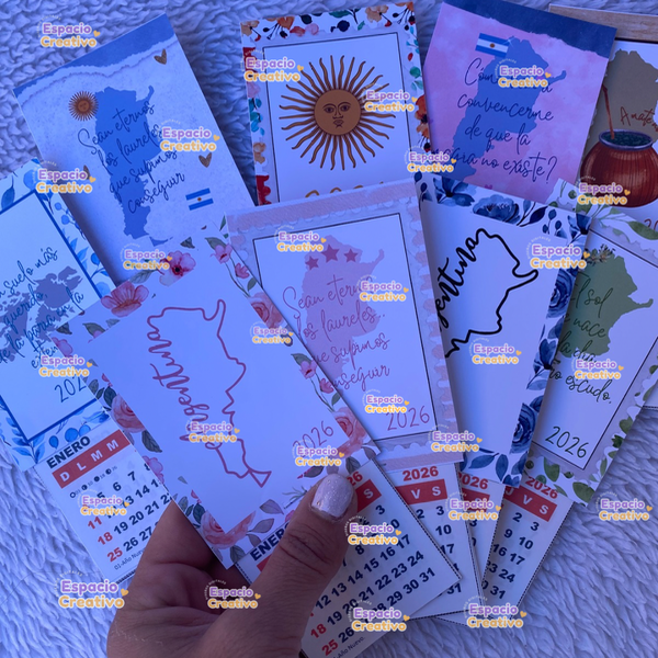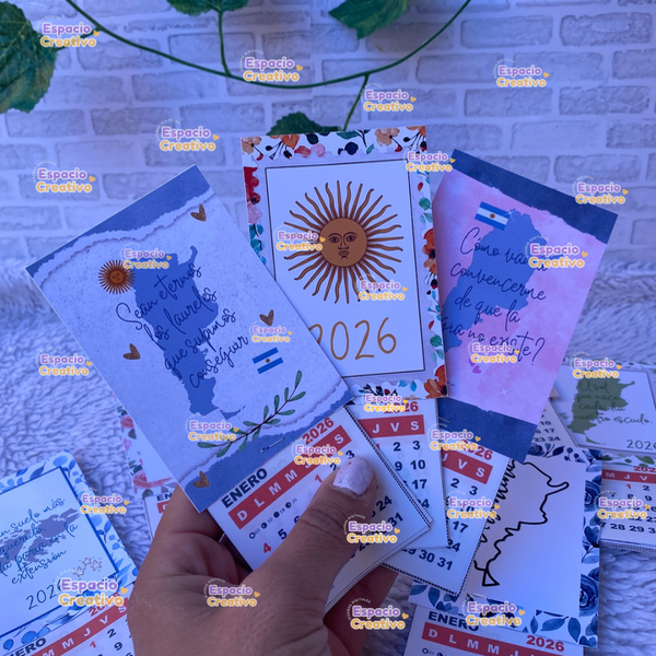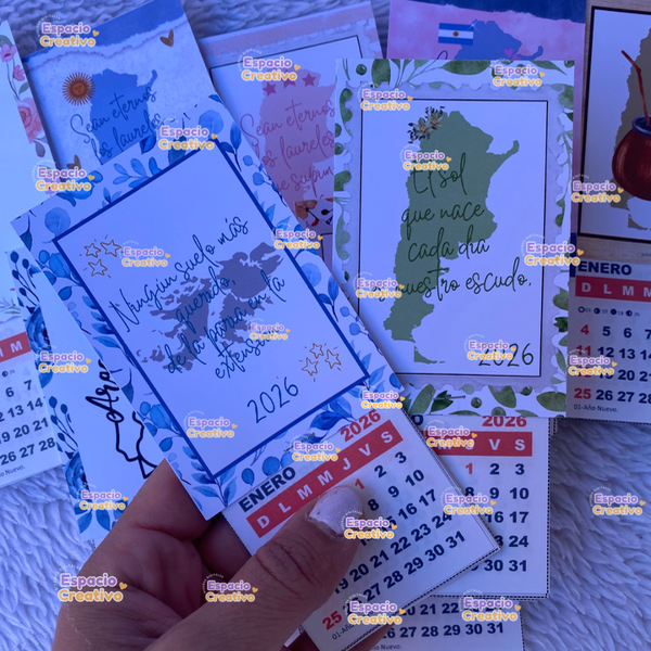 El pack incluye 9 diseños de tarjetas medida 6,5 x 9,5 cm (entran 9 por hoja A4) más calendarios mignon 2026 medida 5x5cm