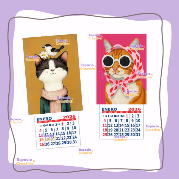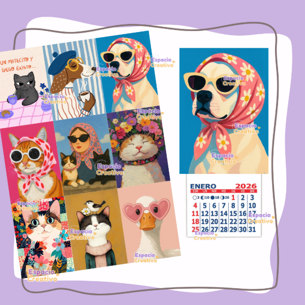Pack de tarjetas cute mas calendarios mignon 2026.