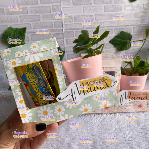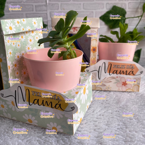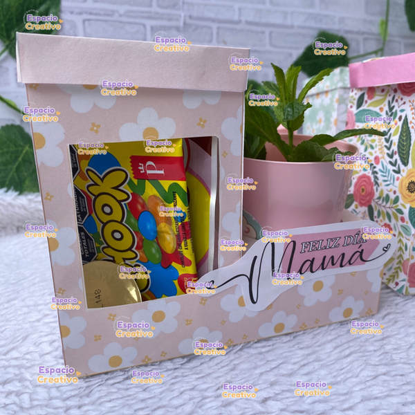 Pack de porta macetas y golosinas para mamá.