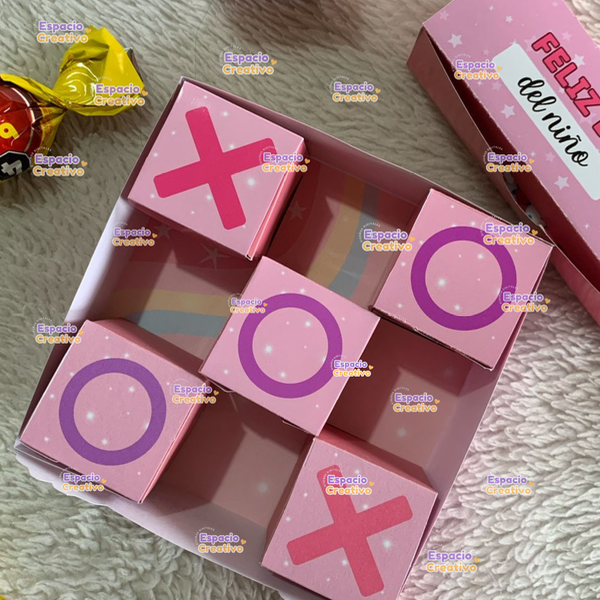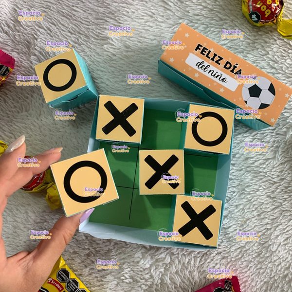 Incluye caja para contener las cajas pequeñas, caja grande, y base de ta te ti!