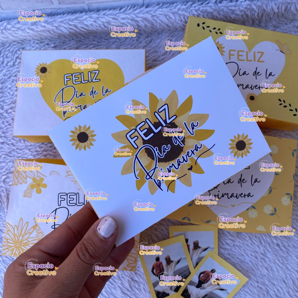 El pack incluye 5 diseños de cajas, frases y fotos polaroids.