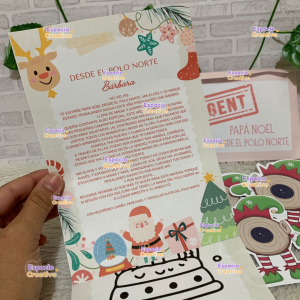 En esta carta, Santa les cuenta que envió camaritas mágicas de elfos para ver sus momentos lindos: cuando ayudan, son amables, respetuosos y escuchan a mamá y papá.