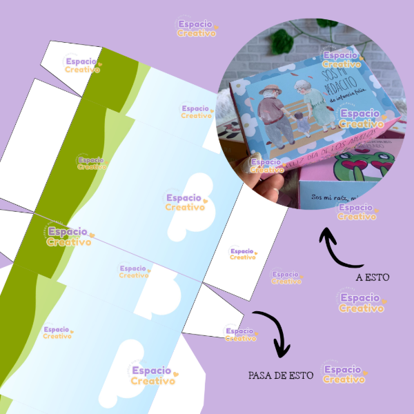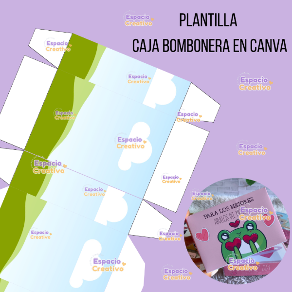 PLANTILLA CAJA BOMBONERA 100% EDITABLE EN CANVA.